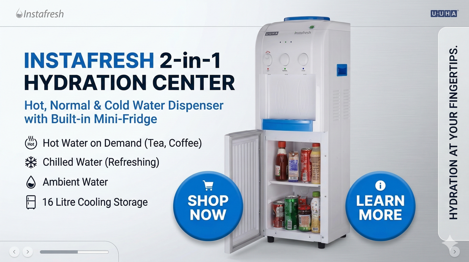 | High-performance Water Dispenser with built-in Cooling Cabinet, designed for offices, homes, and commercial spaces. It provides instant hot & cold water while offering extra storage space in the lower cooling cabinet for beverages. Energy-efficient, durable, and ideal for daily use. |